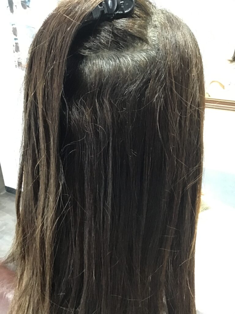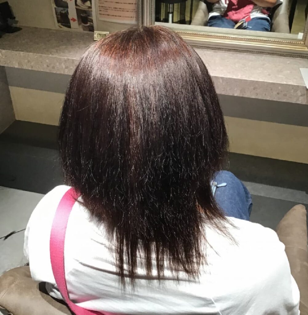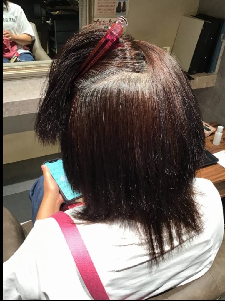 「今まで白髪染めてもすぐ色が落ちてたのに、3週間経っても気にならなかったんです。毛先の引っ掛かりもマシになってきて、縮毛矯正をしてもすぐにクセが気になってたのが、前ほどじゃないのが嬉しいです。」