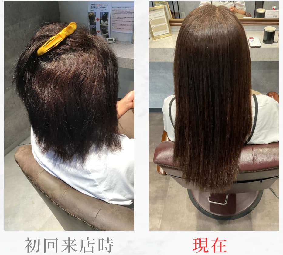 髪のダメージだけでなく、美容室への不信感も募っていたお客様。まさに「ダメージの負のスパイラル」に陥っていました。