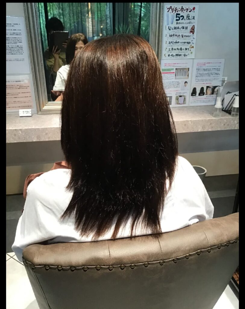 「雨や梅雨どきでも髪がおさまるようになりました。寝て起きてそのまま出かけれるようになったのが本当に楽です。リタッチしかしていないのに、髪の明るさがいい感じで嬉しいです。」